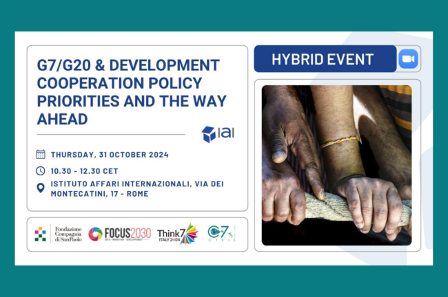 G7/G20 & Development cooperation policy priorities and the way ahead EventsBy c7AdminOctober 29, 2024 Save The Date – 31 oct 2024